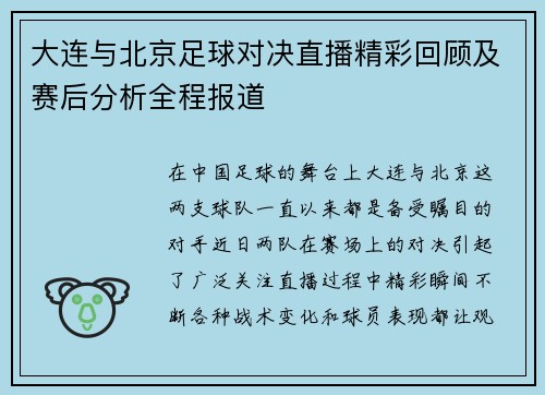 大连与北京足球对决直播精彩回顾及赛后分析全程报道